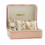 时光一百(TIME100)女表小表盘简约防水女士腕表套装女手链手表七夕礼物送女友W50888L钢色