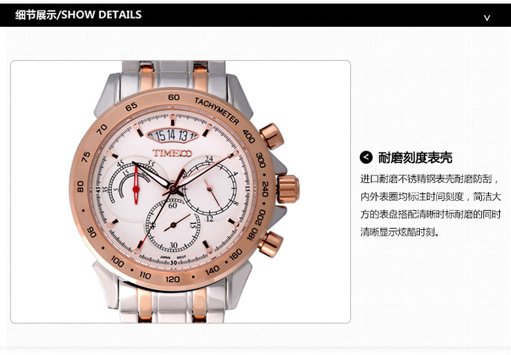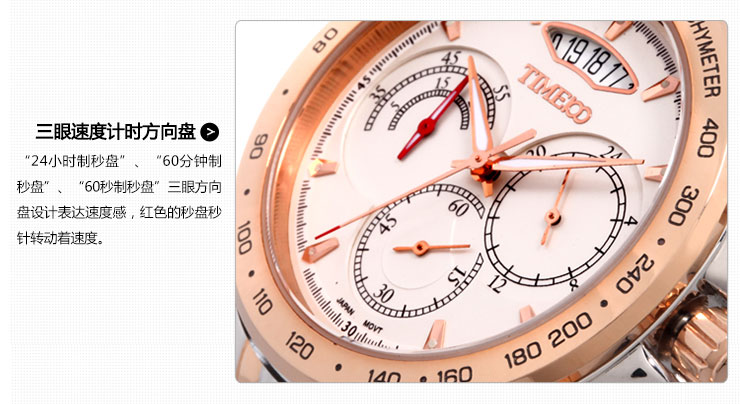 型男三眼夜光百搭男表 全国包邮(只包圆通和申通快递),钢带表免费赠送拆带器。