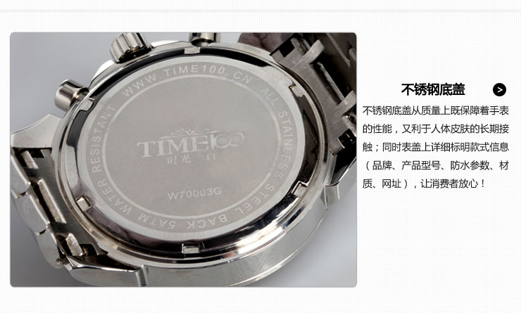 时光一百(TIME100)男表个性炫彩三芯搭配石英男士手表W70176G