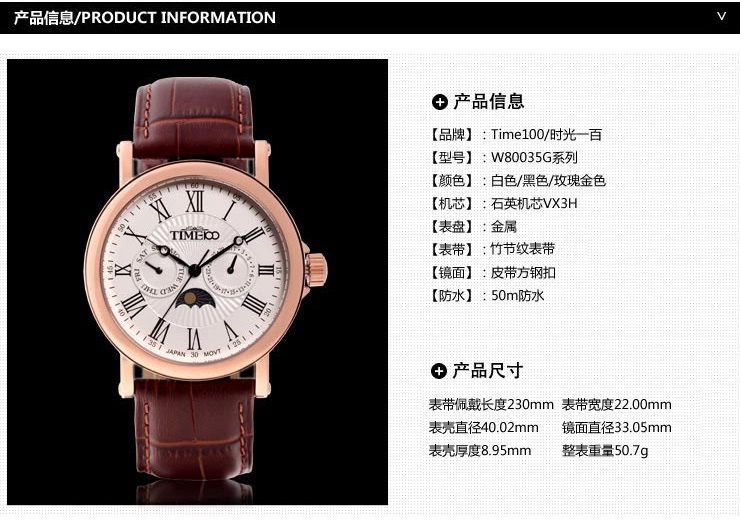 轻奢时尚多功能月相商务手表 (全国包邮)