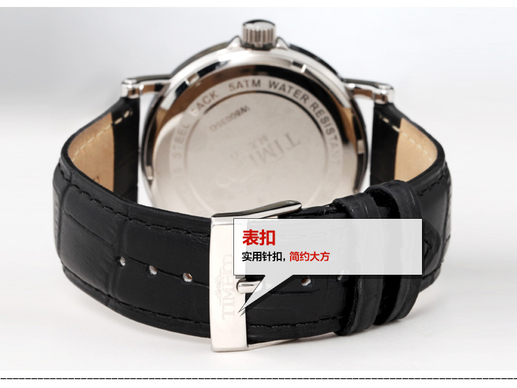 时光一百Smileyes系列 商务运动数字时标钢带石英男表TSW044G