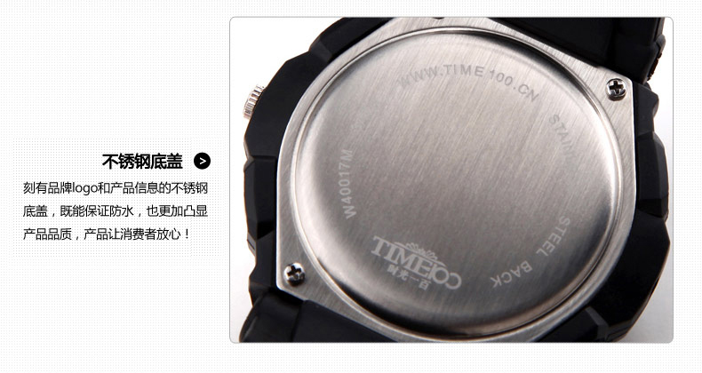 时光一百Smileyes系列 动感大表盘硅胶带石英男表TSW019G