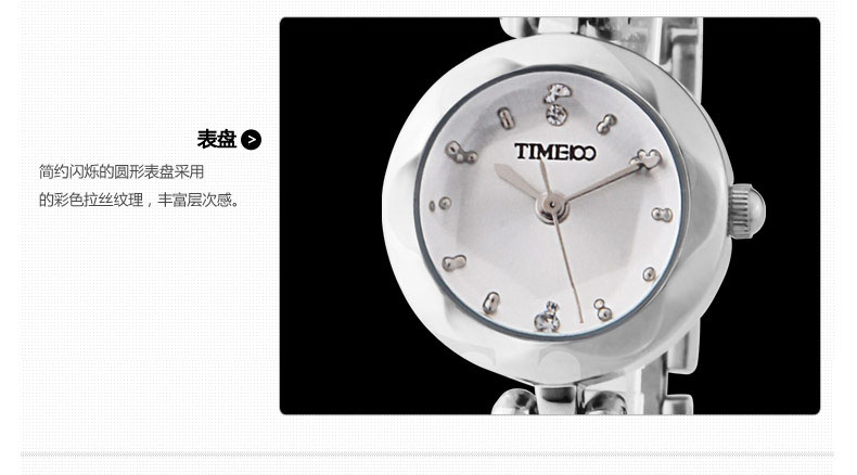 时光一百(TIME100)女表小表盘简约防水女士腕表套装女手链手表七夕礼物送女友W50888L钢色