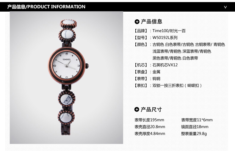 当前位置:首页 > 时尚简约复古手链女士手表防水石英表W50192L