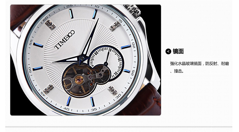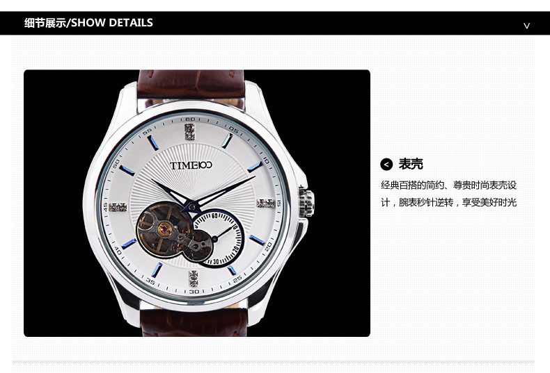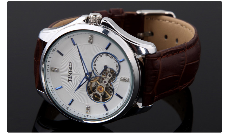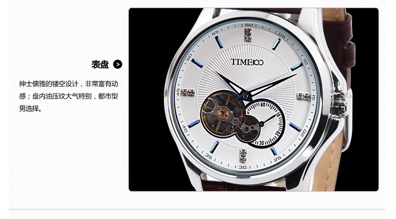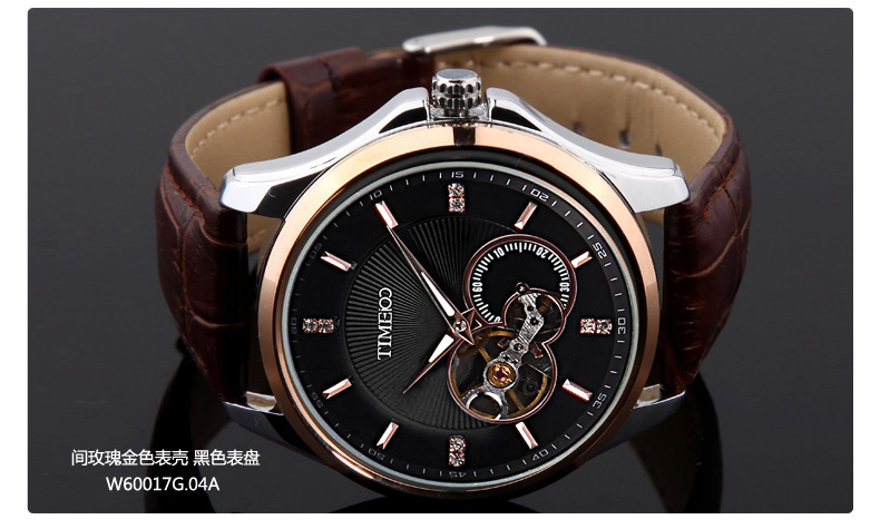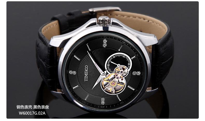 时光一百 休闲商务月相镂空机械表皮带男表W60045G