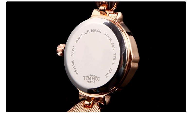 时光一百(TIME100)女表小表盘简约防水女士腕表套装女手链手表七夕礼物送女友W50888L钢色