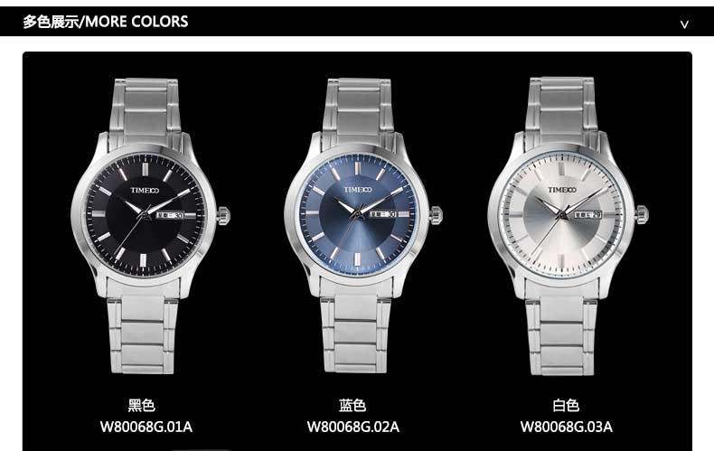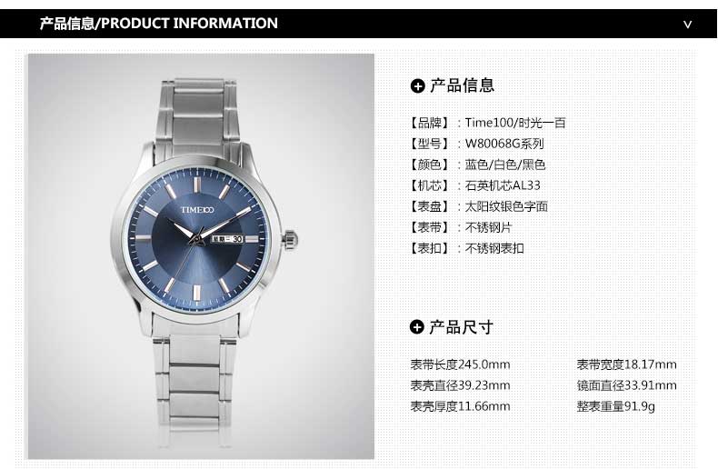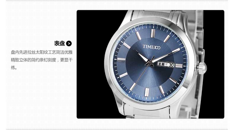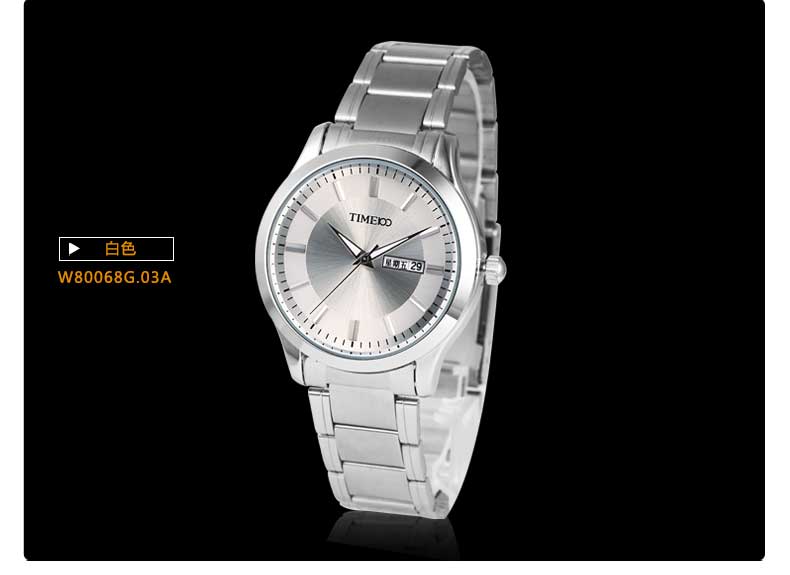 TIME100时光一百 经典简约商务日历钢带情侣男表 全国包邮