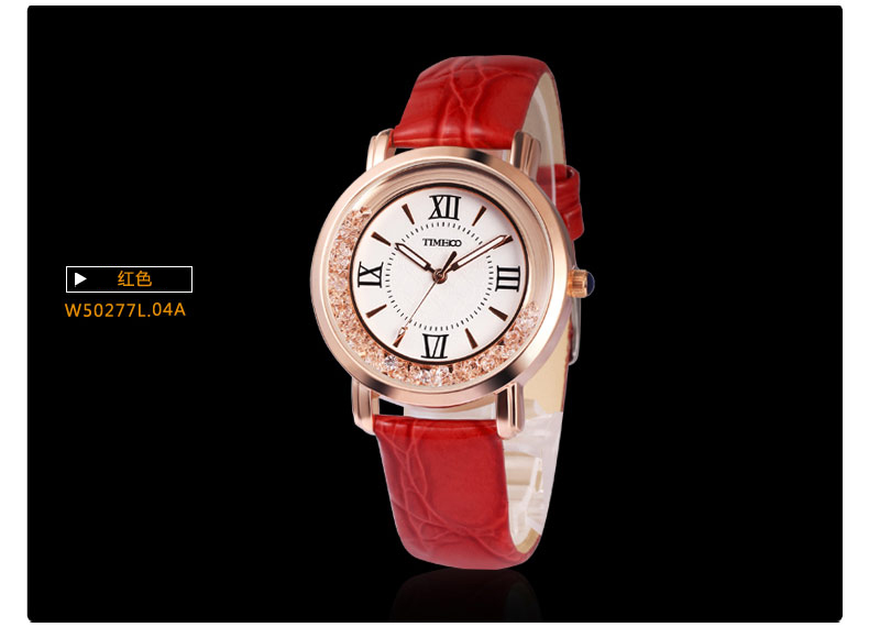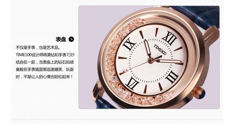 时光一百 简约复古灵动闪钻真皮女表 全国包邮