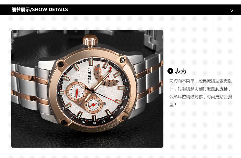 时尚炫酷多功能精钢石英男表 (全国包邮)