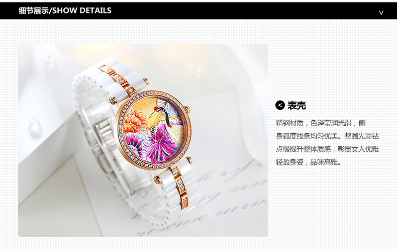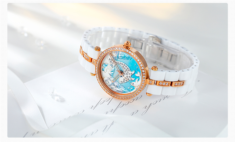 时尚灵动立体雕花珐琅陶瓷女士腕表 (全国包邮)