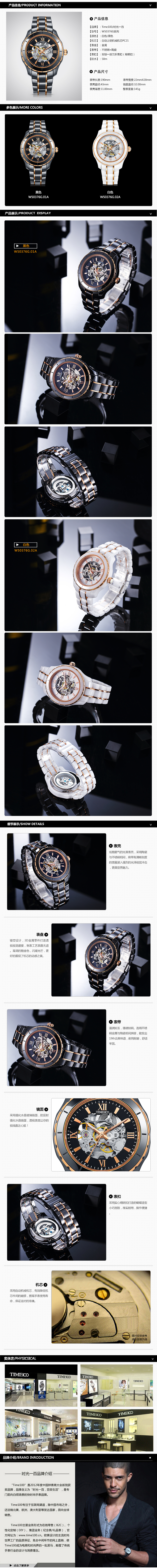 时尚镂空炫酷陶瓷自动上链男士机械手表 (全国包邮)