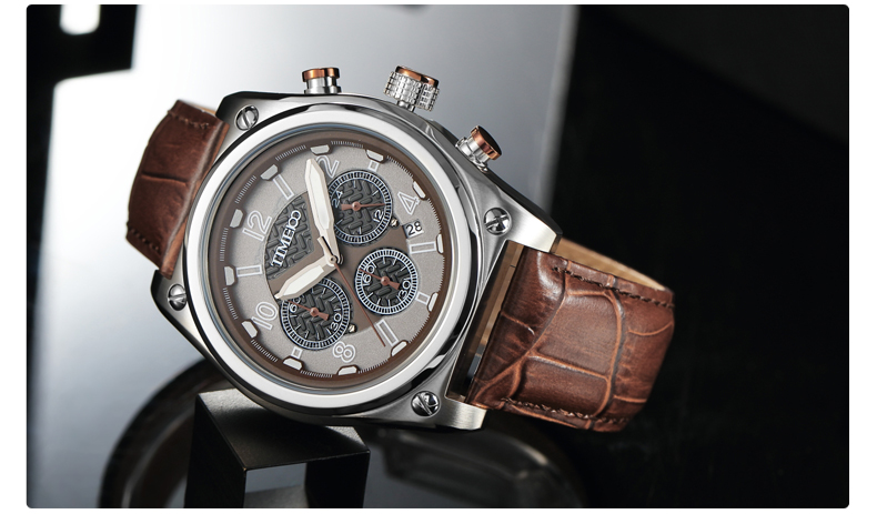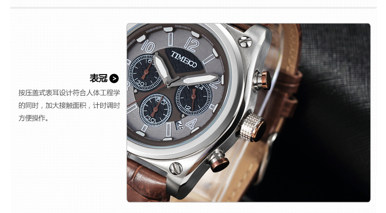 TIME100时光一百 简约复古立体水波纹日历钢带情侣男表W80070G