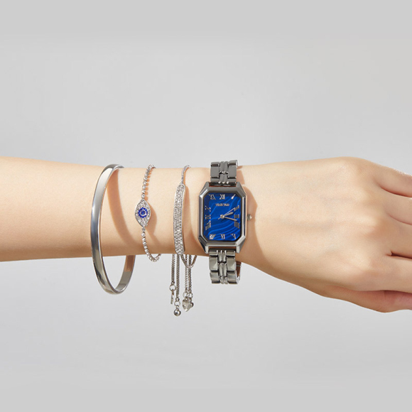时光一百(TIME100)女表小表盘简约防水女士腕表套装女手链手表七夕礼物送女友W50888L钢色